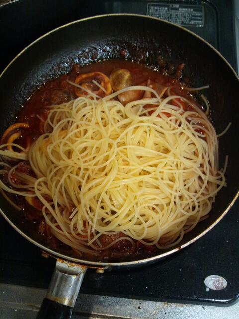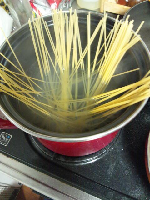 スパゲッティ―二を3分ゆでる(表記のゆで時間は5分と書いてある)