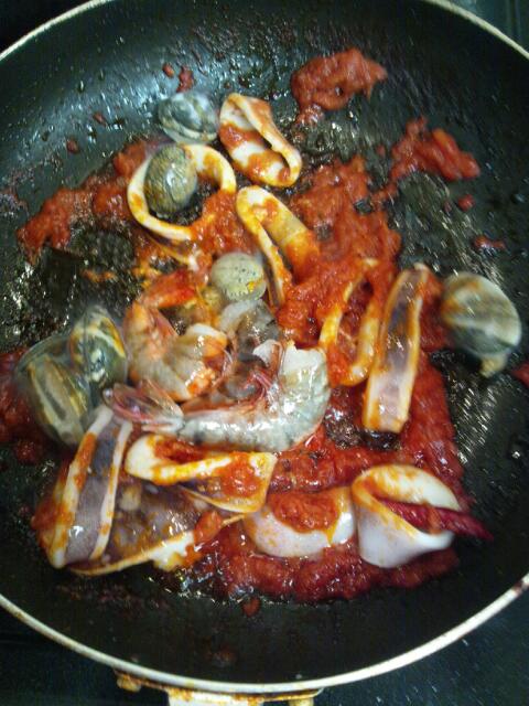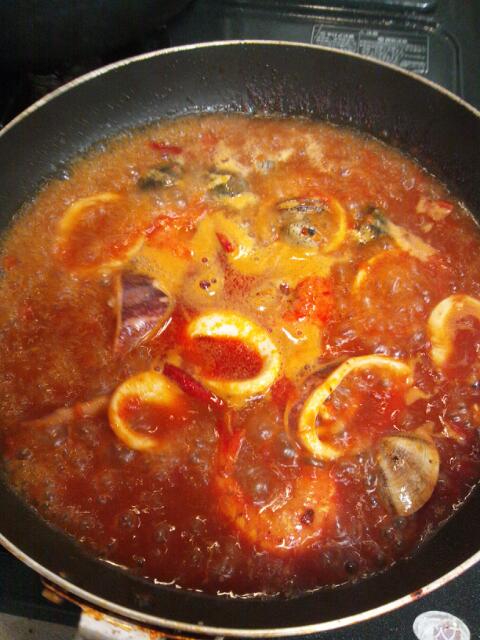 6.海鮮を入れる、火は中火のまま